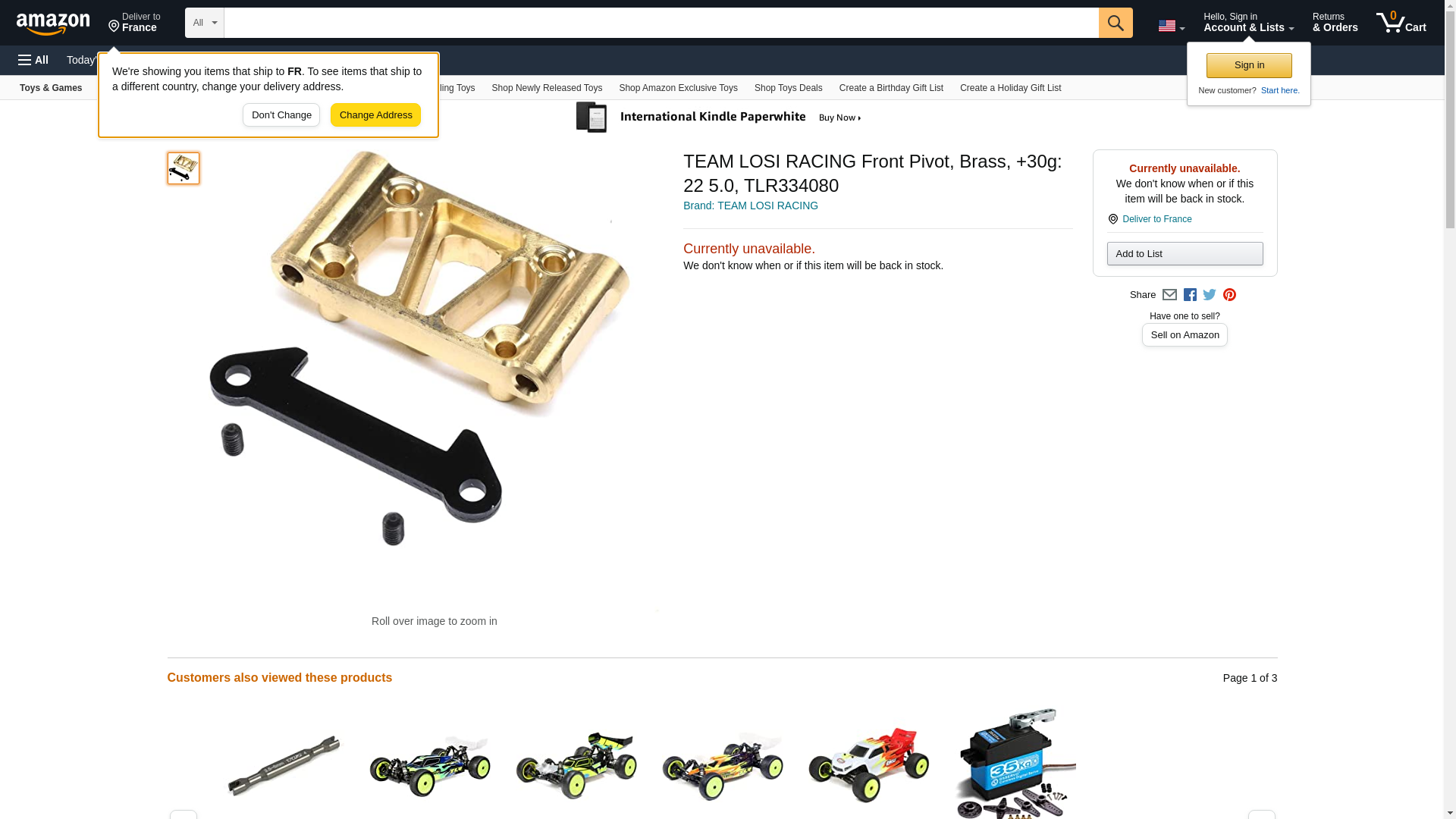 - Team Losi Racing Front Pivot, Brass, +30g: 22 5.0, TLR334080