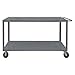 'Flat Handle Utility Cart, Load Capacity 4000 lb., Steel Material, 14 Gauge, Powder Coated Finish, Gray Color, Overall Length 48 In., Overall Width 36 In., Number of Shelves 2, Caster Dia. 6 In., Caster Width 2 In., Caster Type (2) Rigid, (2) Swivel, Caster Material Phenolic, Capacity per Shelf 2000 lb., Distance Between Shelves 26-1/2 In., Shelf Length 48 In., Shelf Width 36 In., Lip Height 1-1/2 In., Handle Included Yes, Includes Formed Steel Handle, Top Shelf Height 37-1/2 In.'