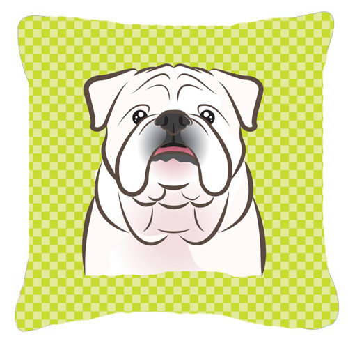 Caroline's Treasures BB1282PW1414 Checkerboard Lime Green White English Bulldog Fabric Decorative Pillow Machine Washable, Indoor Outdoor Decorative Pillow for Couch, Bed or Patio, 14Hx14W