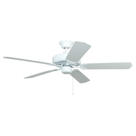 - FAN BLADES: 5 Outdoor Approved White Blades (52" Span / 12° Blade Pitch); CFM: 5284.1