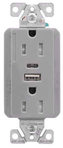 Eaton Wiring Devices TRUSB5A15GY-BOX 5.0A USB Type A DUPLEX RECP 15A 125V GY - KTOOL