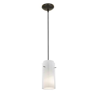 Glass`n Glass Cylinder - E26 LED Cord Pendant - Oil Rubbed Bronze Finish - Clear and Opal Glass Shade