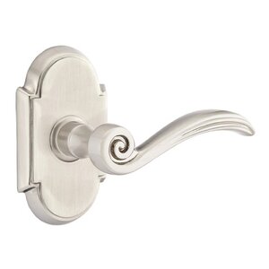 Brass Designer Levers Collection - Passage Right Handed Elan Lever With #8 Rose in Satin Nickel by Emtek Hardware - 8108238ENRHUS15 | MyKnobs