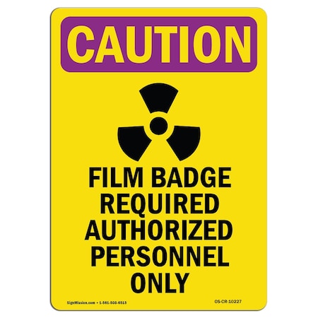 OSHA CAUTION RADIATION Sign, Film Badge Required W/ Symbol, 14in X 10in Aluminum
