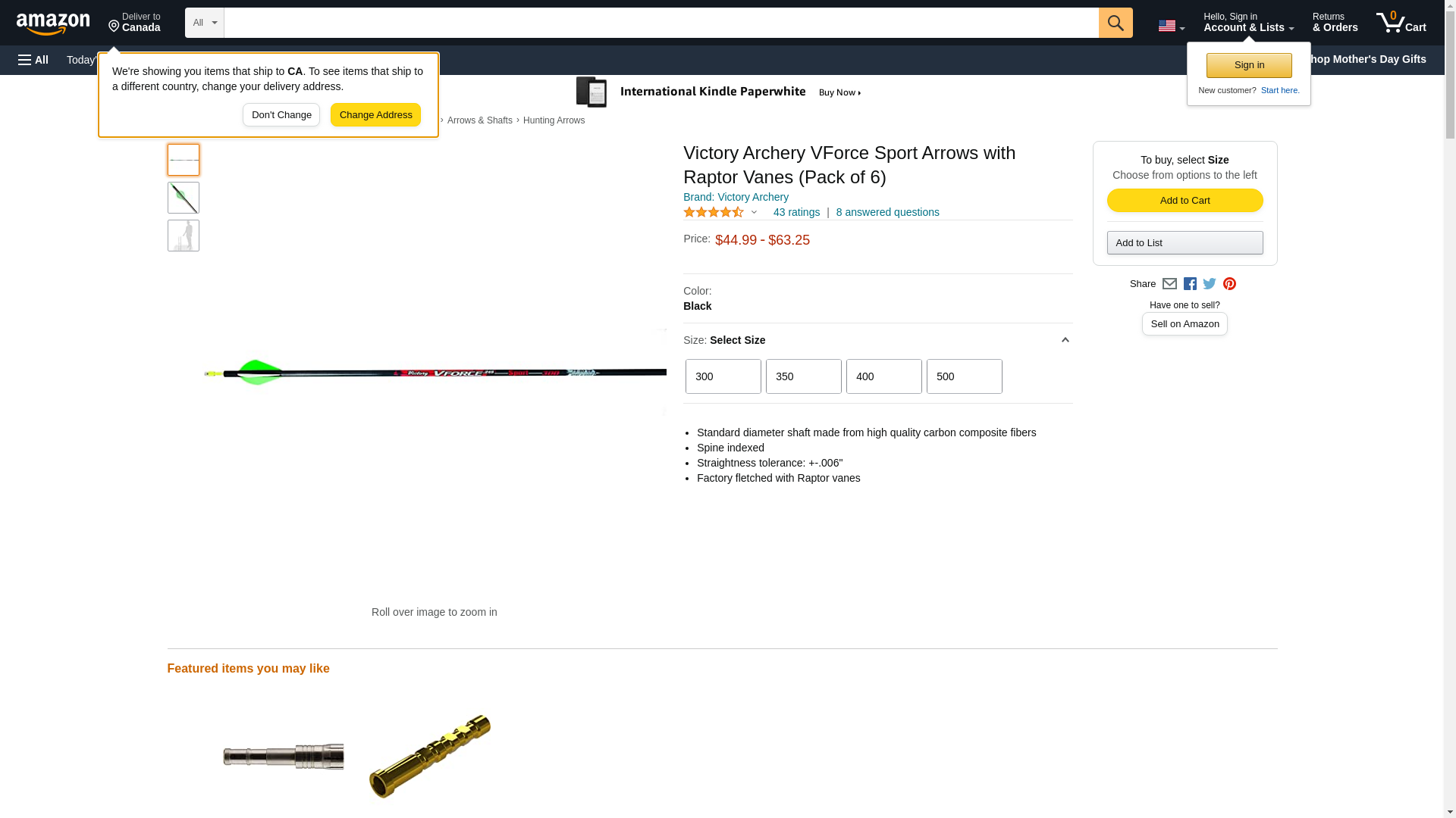 Victory Archery VForce Sport Arrows with Raptor Vanes (Pack of 6), Black, 400