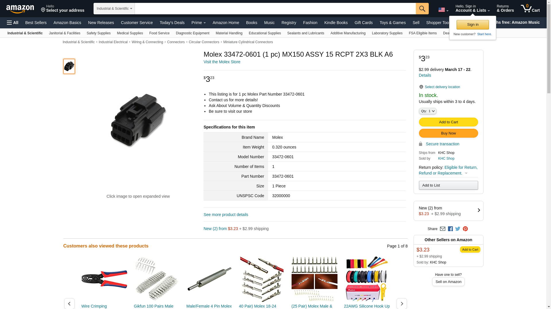 | Feature | This listing is for 1 pc Molex Part Number 33472-0601 |