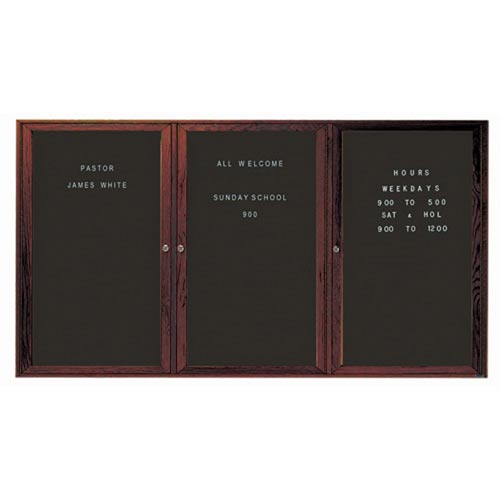 Aarco WDC3672-3 36" x 72" Enclosed Hinged Locking 3 Door Black Felt Message Board with Walnut Frame