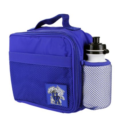 Kentucky Wildcats NCAA Insulated Lunch Bag Tote. Kentucky Wildcats deluxe vinyl lunch box with full zipper, handle, front pouch and side pouch for the water bottle. Keeps food cool and organized. Clean with soap and warm water. <br /> <div style="margin-left: 15px;" class="content"> <ul style="list-style-type: disc;"> <li><span>Kentucky Wildcats NCAA Insulated Lunch Bag</span></li> <li><span>Easy-zip closures. <br /></span></li> <li><span>Front Pouch.</span></li> <li><span>9" Length, 7 3/4" Height, 4 1/4"Deep</span></li> <li><span>Logo on front</span></li> <li><span>Officially Licensed NCAA Product</span></li> </ul> </div>