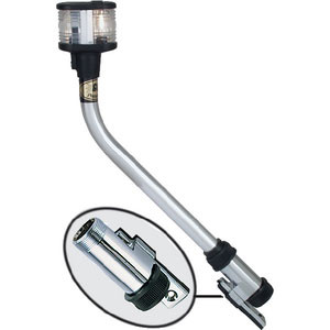 For use on sail or power driven vessels under 20 meters (65.6 ft.) in length. 3-mile visibility. Black plastic and chrome plated zinc alloy top, and chrome plated zinc alloy mounting bracket with waterproof cover. Stowaway plug-in type with 3/4 diameter anodized aluminum tube. Plastic adapters for flat or V type 45 degree windshields. Clear lenses. 12V bulbs included. Screw size is 8.