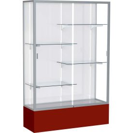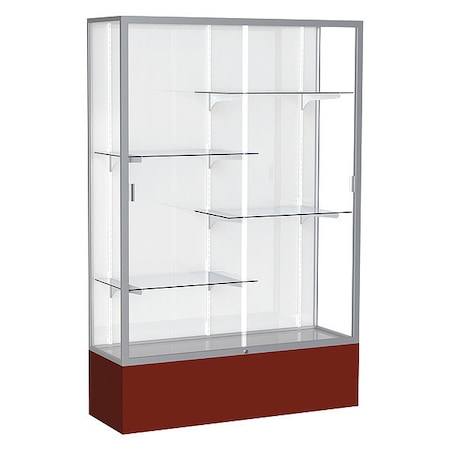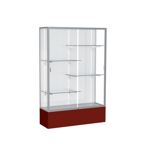 Waddell Spirit White Back Display Case, 48W by 72H by 16" D, Satin Finish with Maroon Base