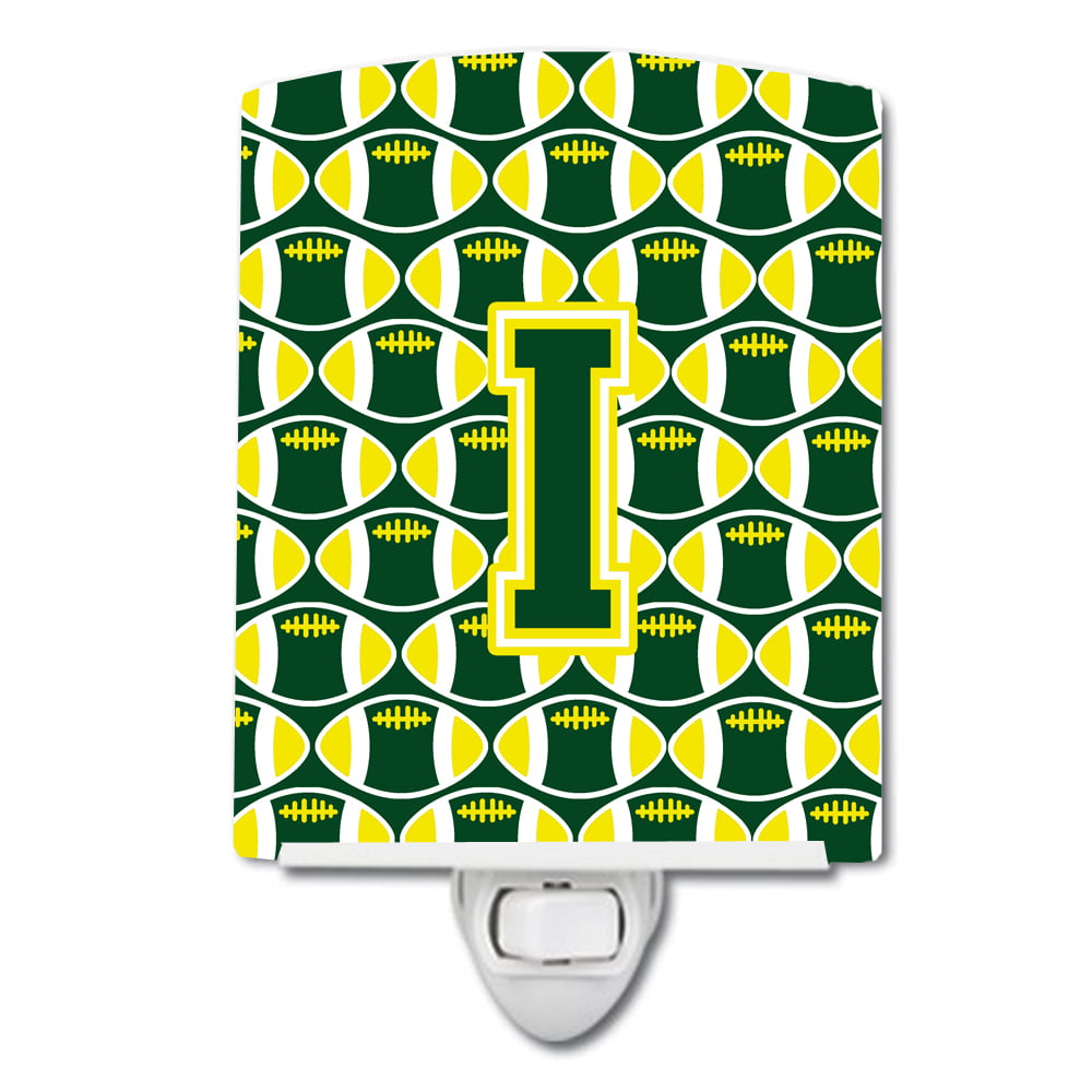 Carolines Treasures CJ1075-ICNL Letter I Football Green & Yellow Ceramic Night Light