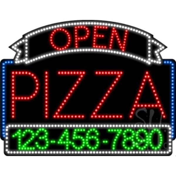 Everything Neon L100-6245 24 x 31 x 1 in. Pizza Open with Phone Number Animated LED Sign - Red, White & Blue