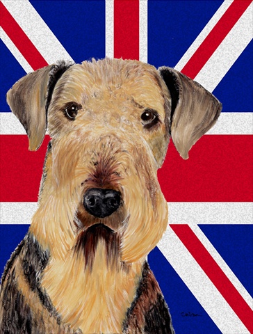 Airedale With English Union Jack British Flag Flag Canvas House Size