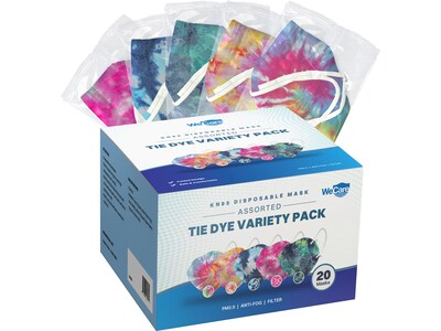 WeCare Tie Dye Disposable KN95 Fabric Face Masks, One Size, Assorted Colors, 20/Pack, 3 Packs/Carton | Quill.com