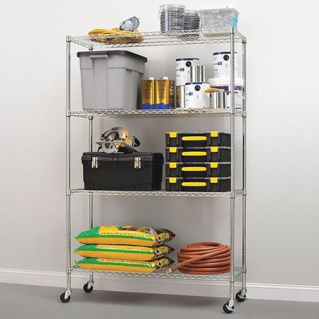 Alera 4T601848SR Complete Wire Shelving Unit W/caster, Four-Shelf, 48 X 18 X 72, Silver