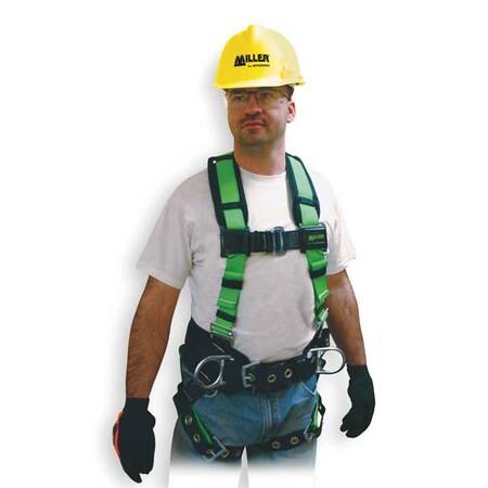 Miller by Honeywell Contractor Non-Stretch Full Body Safety Harness with Side D-Rings, Universal Size-Large/XL, 400 lb. Capacity (650CN-BDP/UGN), Green