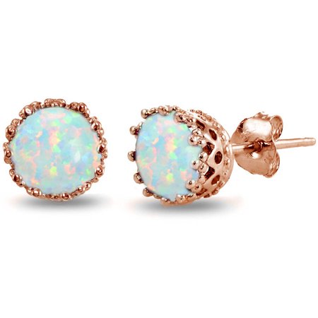 <br /> <b>Created Opal Rose Gold Flashed Sterling Silver Crown Stud Earrings:</b> <ul> <li>Crafted in rose gold flashed silver</li> <li>Created opal</li> </ul> <p>Every piece of Walmart jewelry passes rigorous inspection at our Quality Assurance labs. So you can buy with confidence ? guaranteed. <spanclass=text2bold> <a href="http://learn.walmart.com/Beauty/Articles/Jewelry_Quality_Guarantee/20636/">Learn More</a> <br /> </spanclass=text2bold></p>