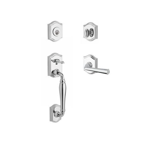 Baldwin SCWESXFEDRTAR260 Reserve Single Cylinder Handleset Westcliff x Federal with Traditional Arch Rose in Bright Chrome Finish Right Hand
