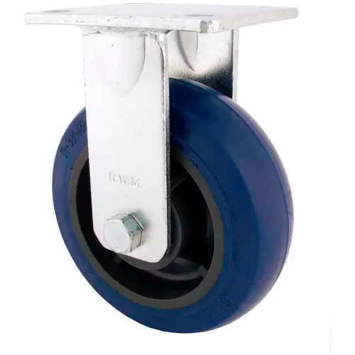 RWM Casters Freedom 48 Series Plate Caster, Rigid, Elastomer Wheel, Ball Bearing, 1200 lbs Capacity, 5" Wheel Dia, 2" Wheel Width, 6-1/2" Mount Height, 4-1/2" Plate Length, 4" Plate Width