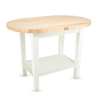 C-ELIP4830175-S-AL Base Finish: Alabaster, Shelves: 1 Included Features: -1.75'' Thick elliptical hard rock maple top.-Edge grain constructed butcher block surface.-Made in USA.-Eco friendly. Color/Finish: -Boos board cream with beeswax finish. Dimensions: -Overall dimensions: 35'' H x 48'' W x 30'' D. Collection: -Elliptical C-Table collection.