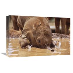 Global Gallery GCS-452955-1218-142 12 x 18 in. Orphaned Baby Isholta Playing in Mud Bath, Tsavo East NP, Kenya A