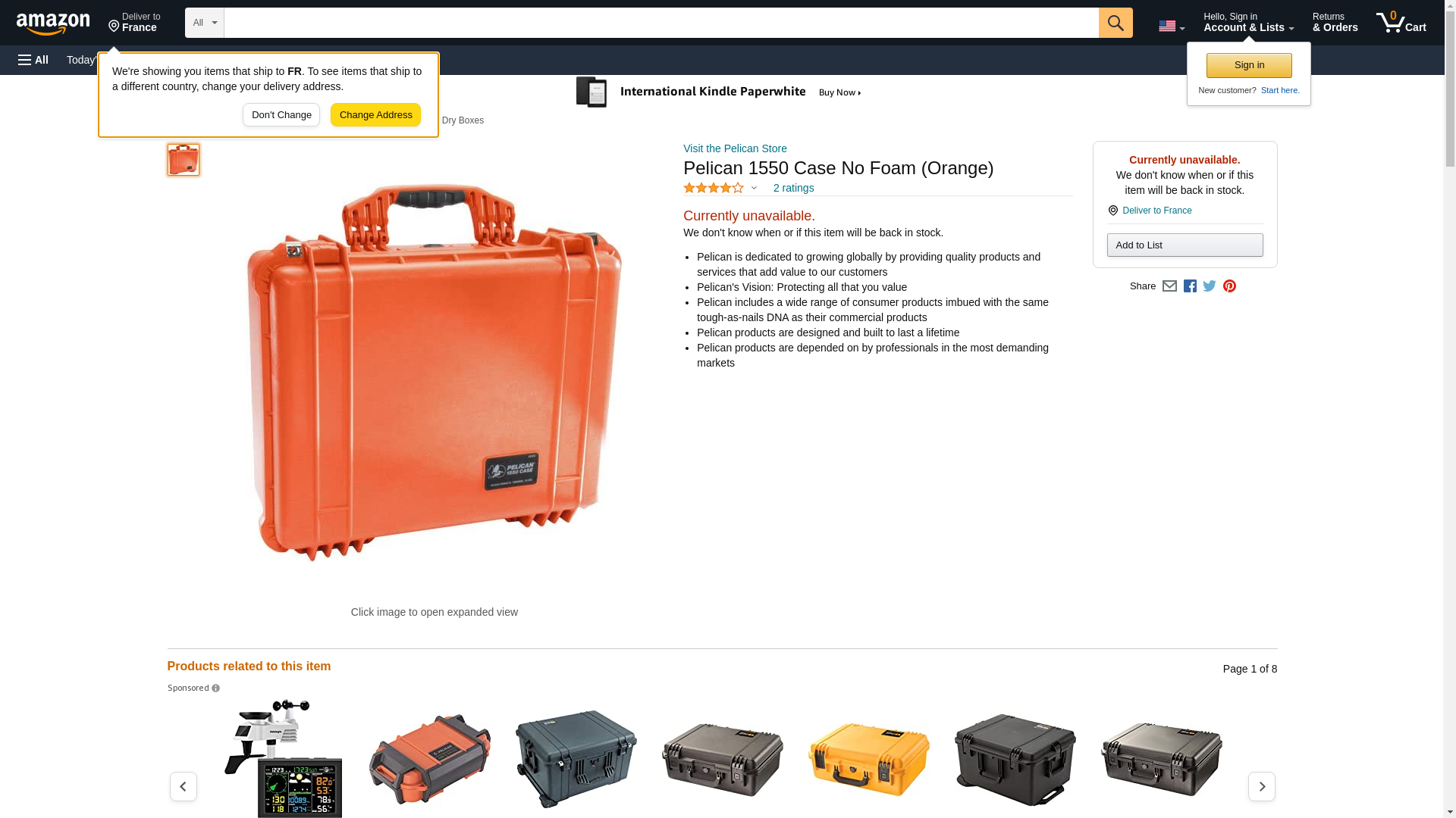 1550-001-150 Pelican 1550NF, Case (No foam) ORANGE, 18.43" x 14.00" x 7.62"