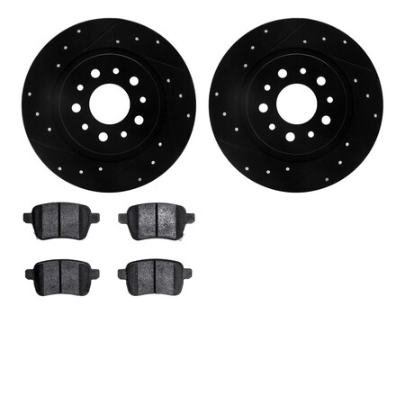 Dynamic Friction Company Rear Brake Rotors-Drilled and Slotted-Black with 5000 Euro Ceramic Brake Pads 8602-07002