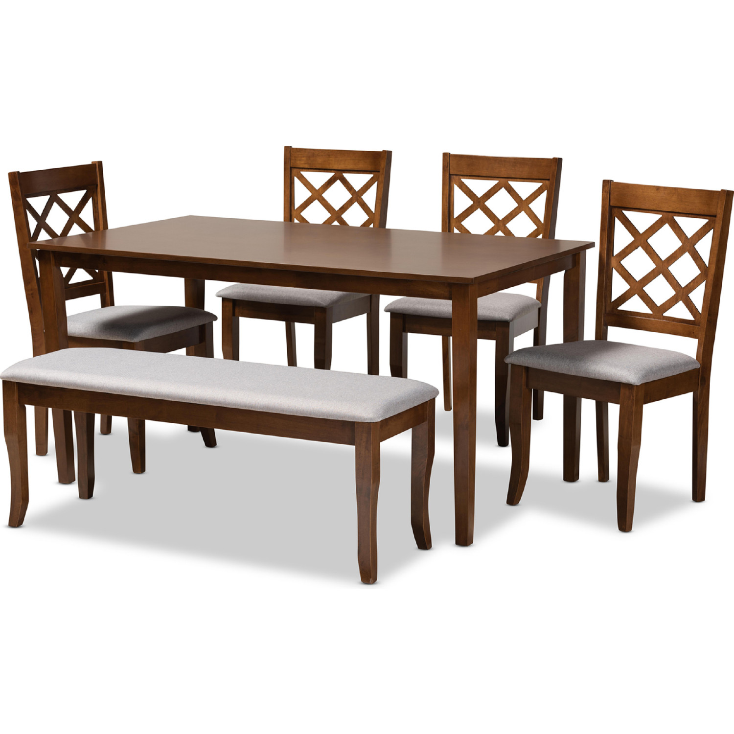 Baxton RH330C-Grey/Walnut-6PC Dining Set Andor 6 Piece Dining Set in Gray Fabric & Walnut Brown Finish