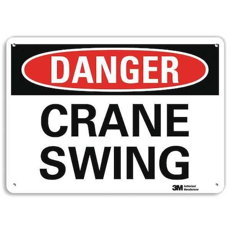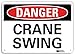Smartsign U3-1282-RA_10X7"DANGER CRANE SWING" Reflective Recycled Aluminum Sign, 10" x 7"