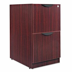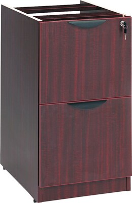 Not freestanding, attaches under worksurface. Sturdy four-sided drawer construction with separate front panel. Full-extension ball bearing slides on file drawer for easy access. Drawers lock for securing contents. Durable 3 mm edge banding protect against bumps and dings. Two fold-away safety keys (included) for a slimmer profile. Color: Mahogany; Overall Width: 15 5/8"; Overall Depth: 20 1/2"; Overall Height: 28 1/2".