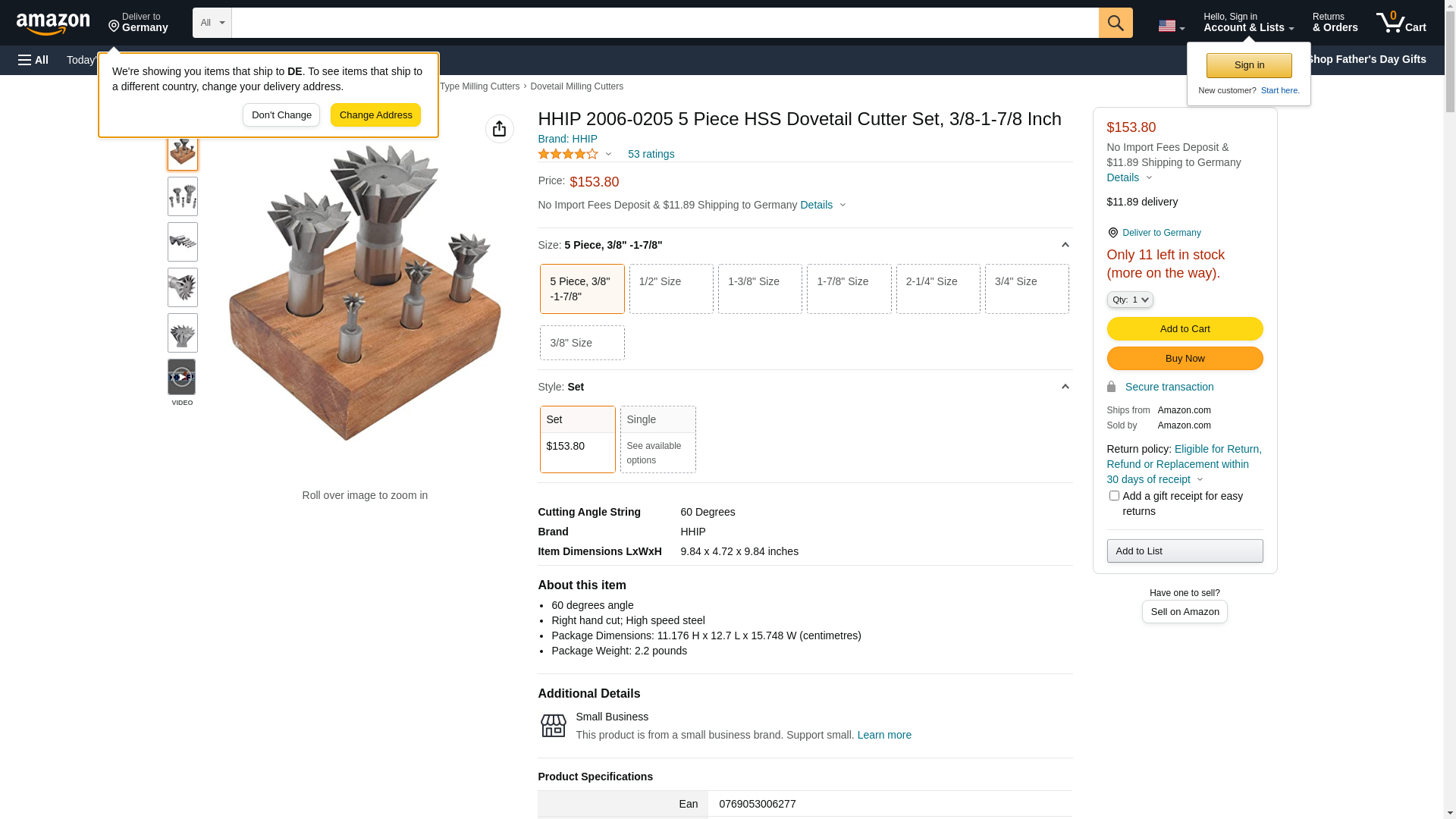 HHIP 2006-0205 5 Piece HSS Dovetail Cutter Set, 3/8-1-7/8 Inch