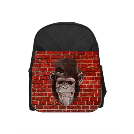 Monkey Punk Brick Wall Print - 13" x 10" Black Preschool Toddler Children's Backpack