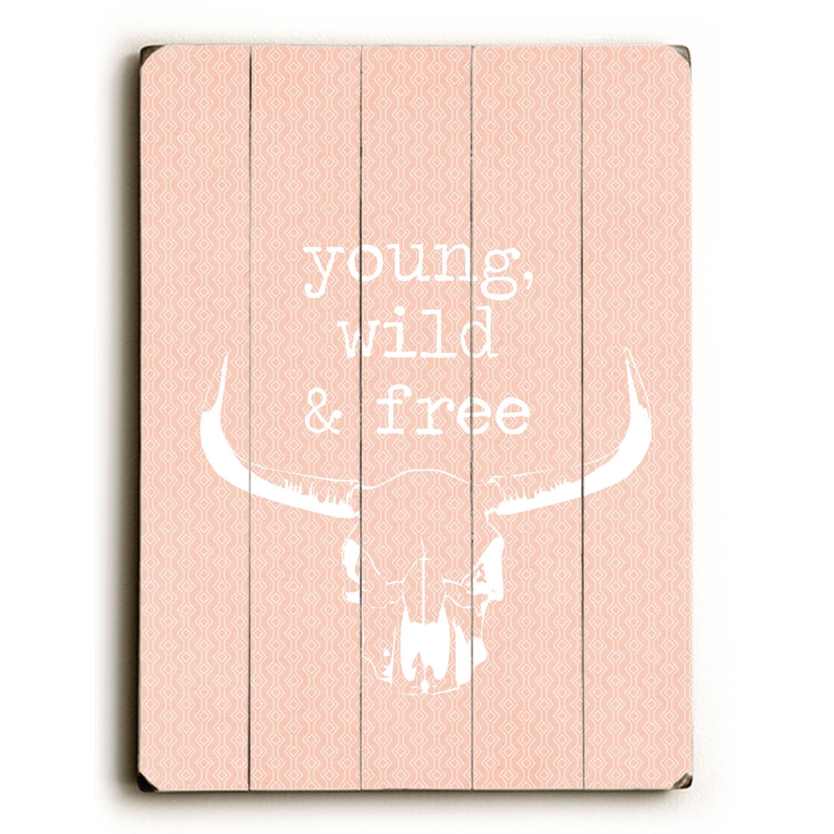 One Bella Casa 0004-4816-26 14 x 20 in. Young Wild & Free Planked Wood Wall Decor by Cheryl Overton