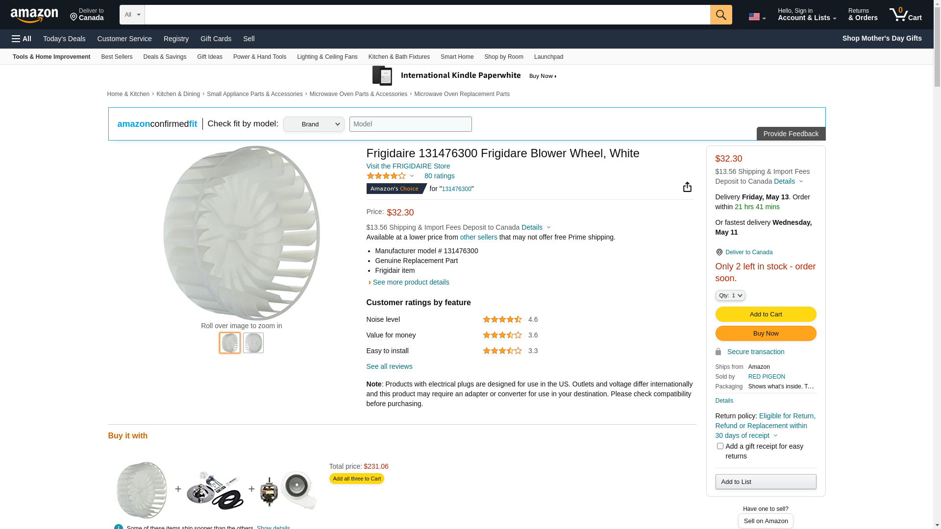 ![]() midwestapplianceparts.com | 131476300-WCI-P | 1 | -2 | 1 | 1 @ $45.21 |