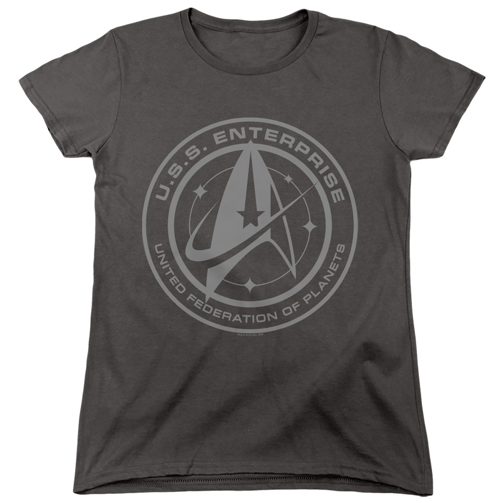 Trevco CBS2565-WT-4 Womens Star Trek Discovery & Enterprise Crest-Short Sleeve Tee, Charcoal - Extra Large