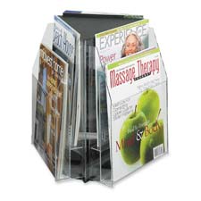 - Triangle tabletop display features a space-saving, two-tier design with six pockets. Each holds 1" of printed material. Crystal-clear acrylic lets you see contents. Spins for easy access. Display holds magazines up to 9" wide.