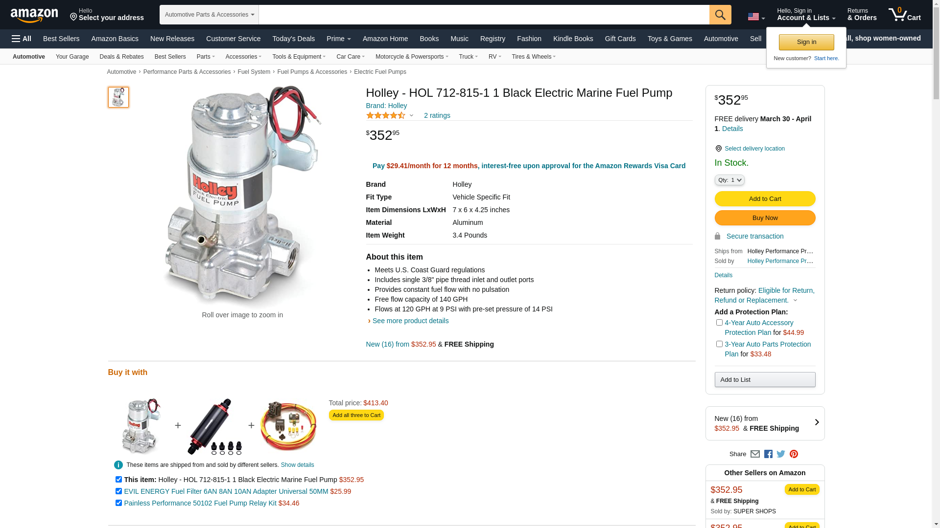| Feature | Holley Performance 712-815-1 Electric Fuel Pump - Marine |