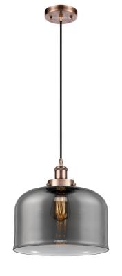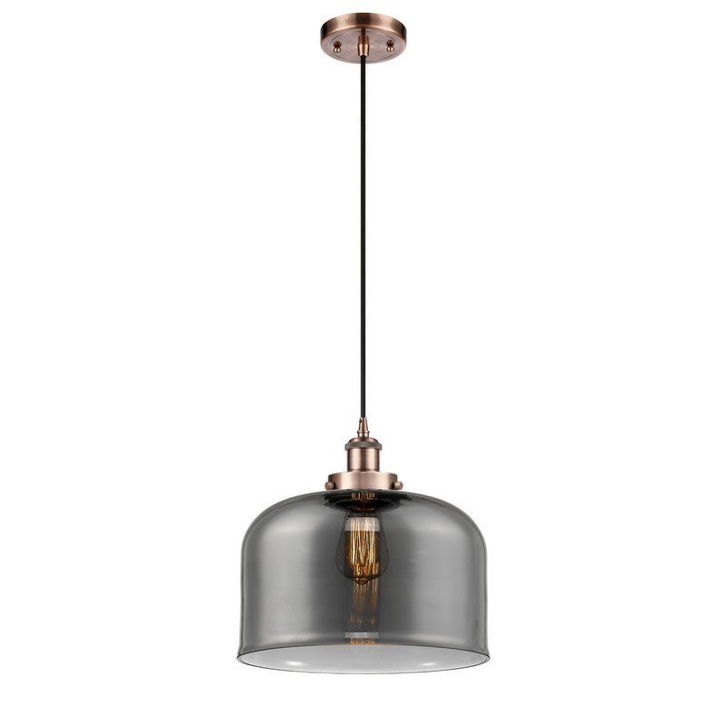 INNOVATIONS LIGHTING 916-1P-AC-G73-L-LED BALLSTON X-LARGE BELL 1 LIGHT 12 INCH PLATED SMOKE GLASS MINI PENDANT,...