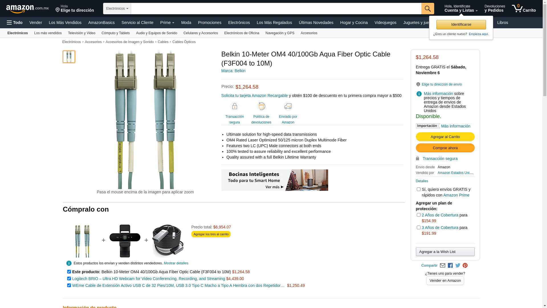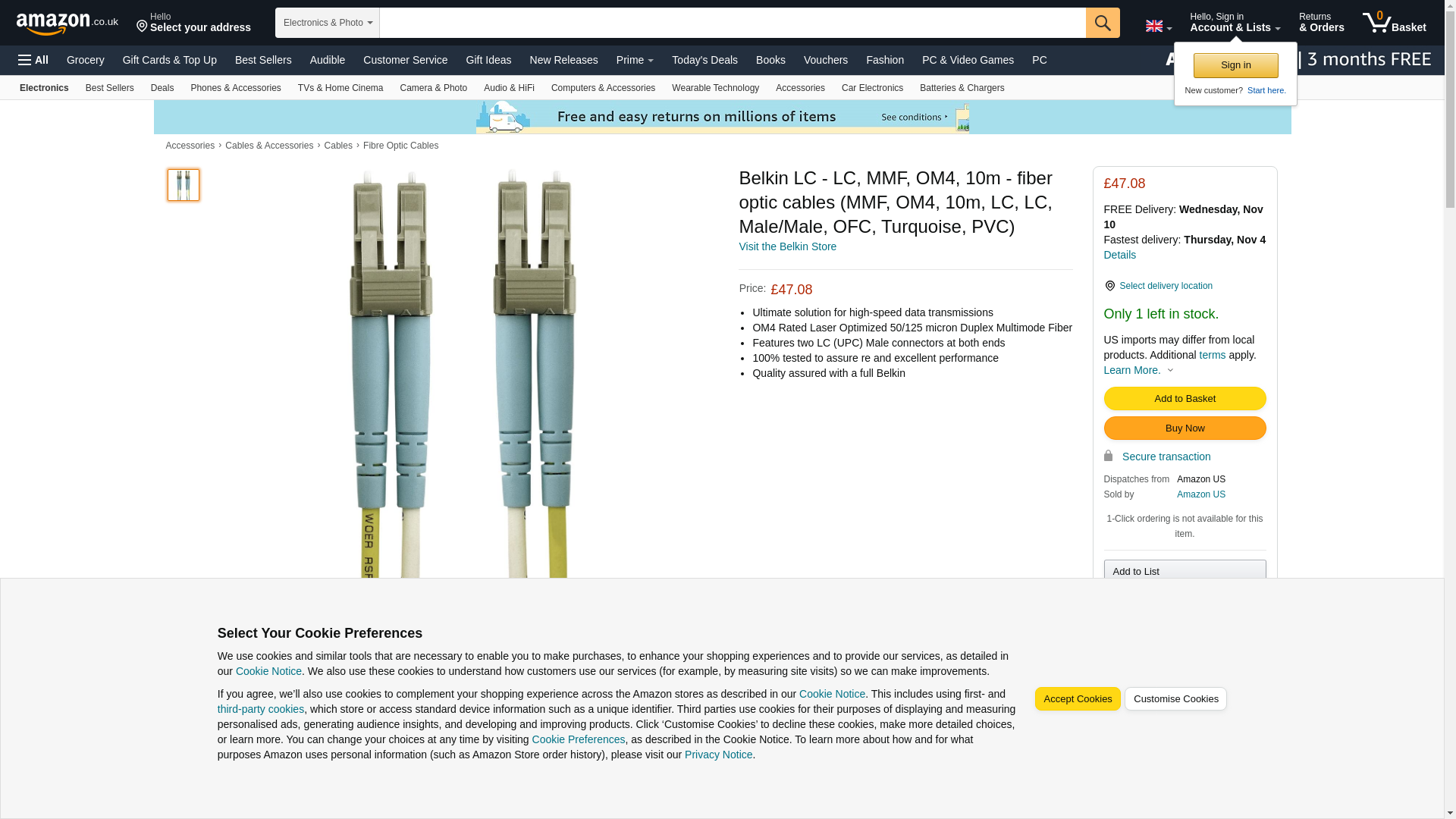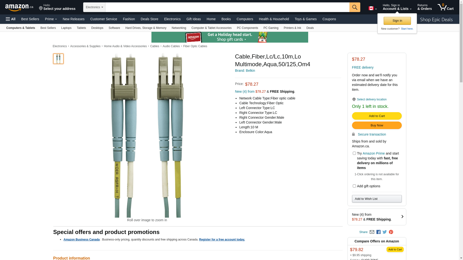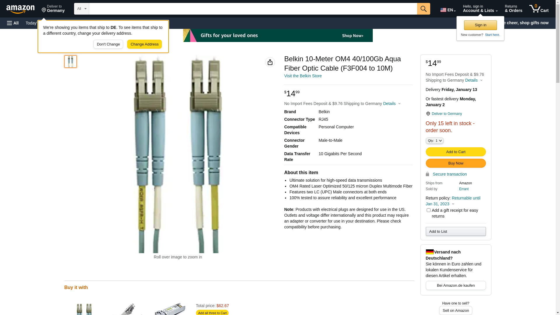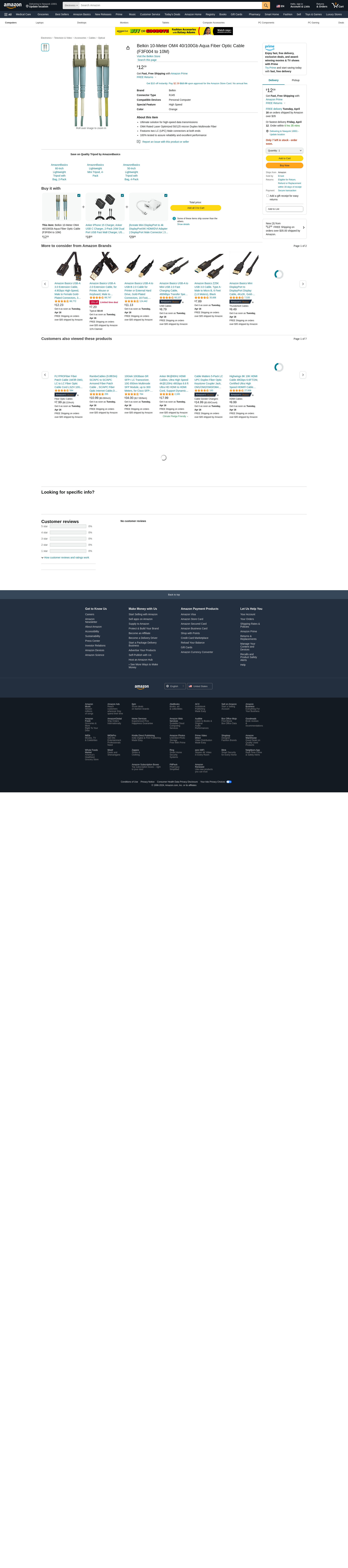 Buy Belkin 10-Meter OM4 40/100Gb Aqua Fiber Optic Cable (F3F004 to 10M): Optical - Amazon.com ? FREE DELIVERY possible on eligible purchases