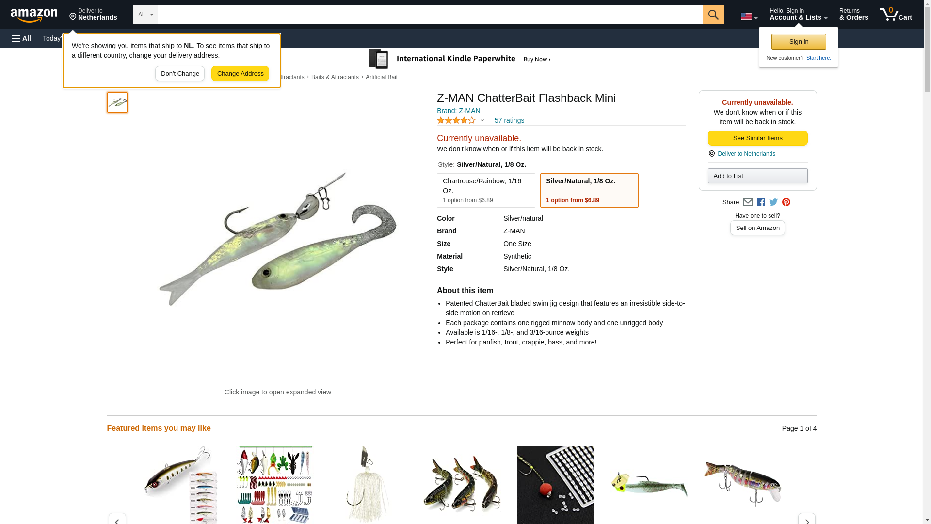 Z-man CB-FBMINI18-07 Chatterbait Flashback Mini Lures, 1/8 oz Weight, Silver/Natural, per 1