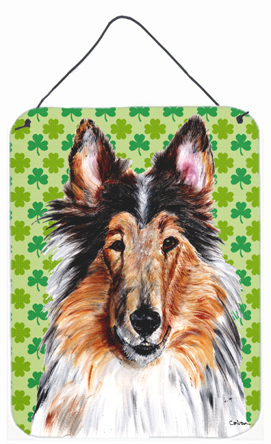 Carolines Treasures SC9718DS1216 Collie Lucky Shamrock St. Patricks Day Aluminum Metal Wall Or Door Hanging Prints