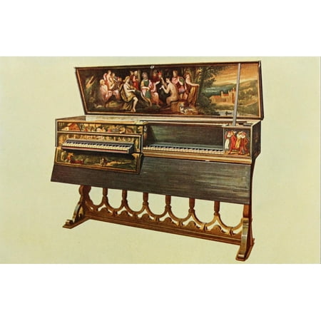 William Gibb Stretched Canvas Art - Musical Instruments 1921 Double Spinnet or Virginal - Large 24 x 36 inch Wall Art Decor Size.