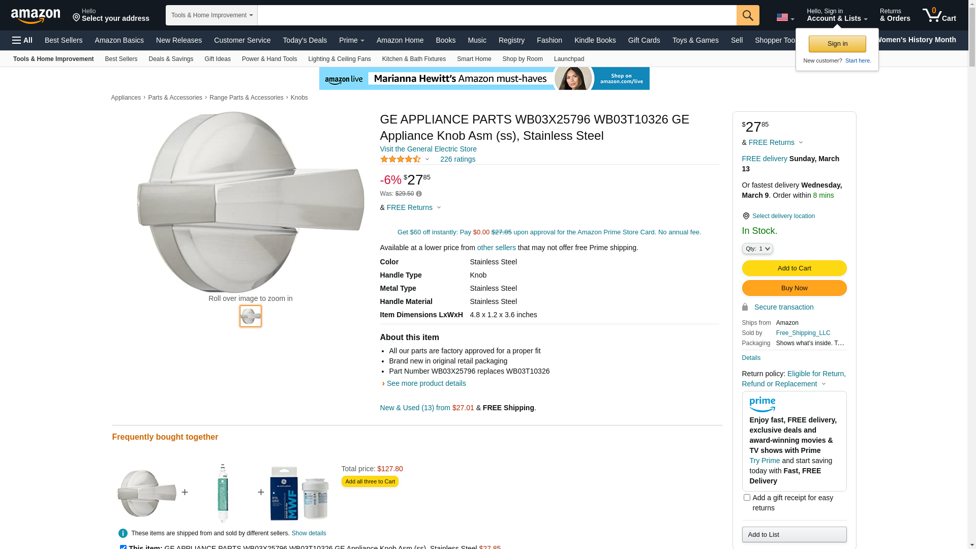 OEM General Electric WB03X25796 Knob - Stainless - Fix.com
