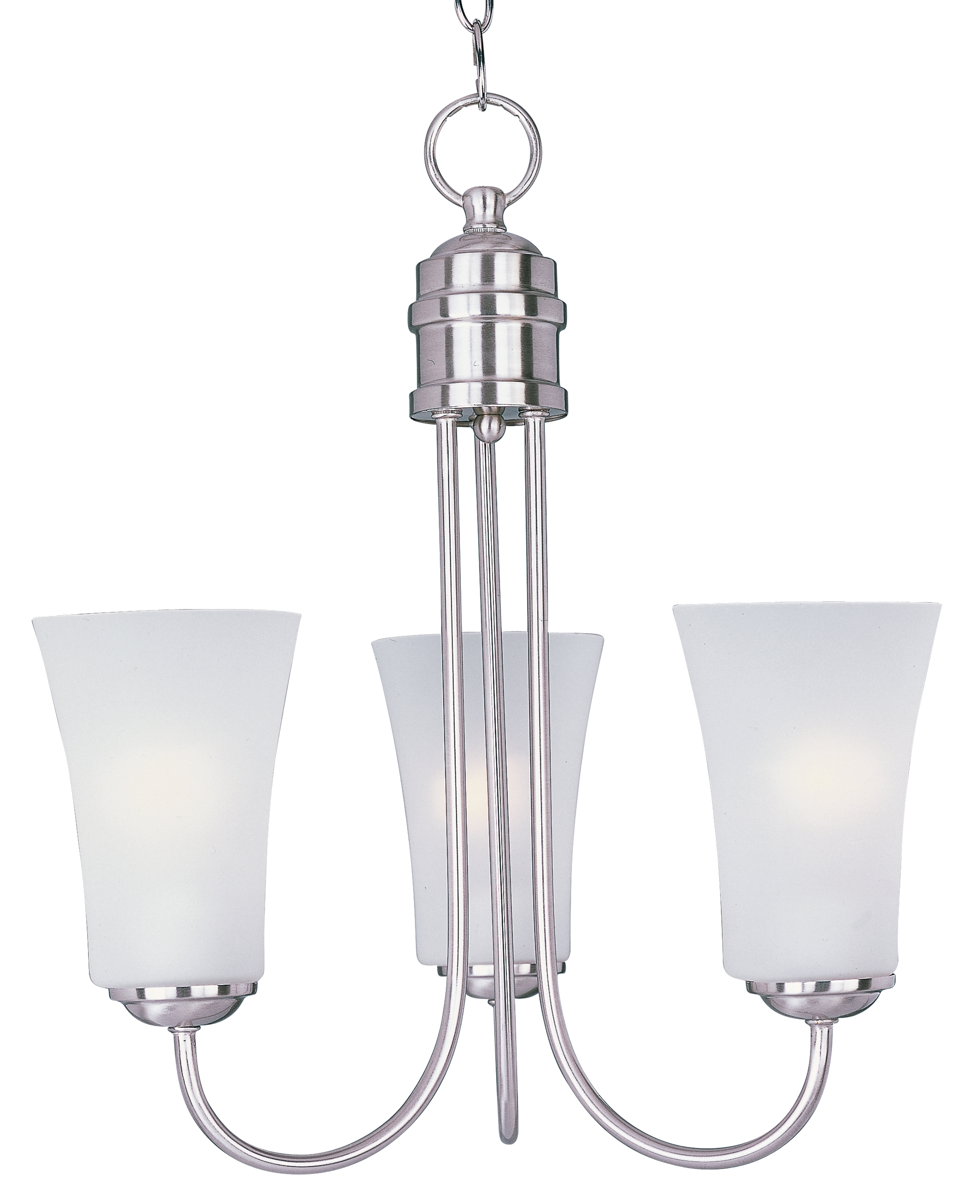 Product HighlightsDesign Style: ModernModern style at a competitive price will make this collection the next builder standard. Tall profile Frost glass shades adorn a minimalistic frame in your choice of Satin Nickel or Oil Rubbed Bronze.Maxim Lighting 10043FTSN Logan 3-Light Single-Tier ChandelierFinish: Satin Nickel, FrostedWidth: 17 InchesHeight: 19 InchesWeight: 5.73 lbs.Max Wattage: 60Bulb Type: MBBulb Included: No Tags: Kitchen, Dining Room