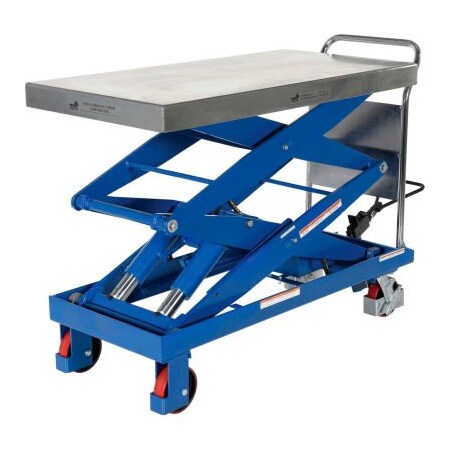 Vestil CART-1500-D-TS Steel Double Scissor Cart, Foot-Actuated, 2 Speed Hydraulic Pump, 1500 lb. Capacity, 47-1/2" x 24" Platform, Height Range 19" to 68", Blue