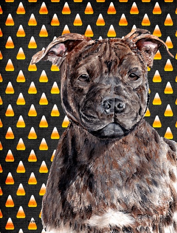 Carolines Treasures SC9657CHF Staffordshire Bull Terrier Staffie Candy Corn Halloween Flag Canvas House Size