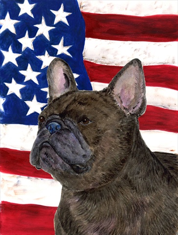Carolines Treasures SS4003CHF 28 x 40 in. USA American Flag with French Bulldog House Size Canvas Flag