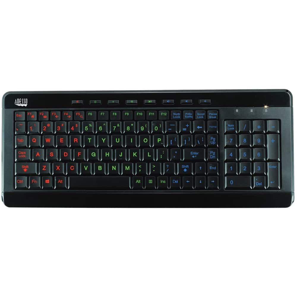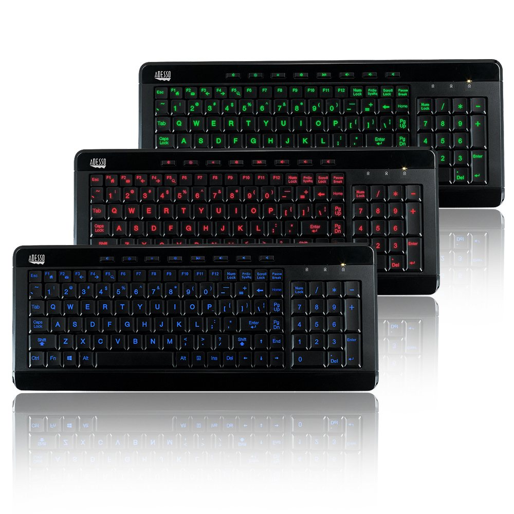 - The Adesso AKB-120EB-3-Color Illuminated Compact Multimedia keyboard is the perfect keyboard for users who work late at night and love hotkeys