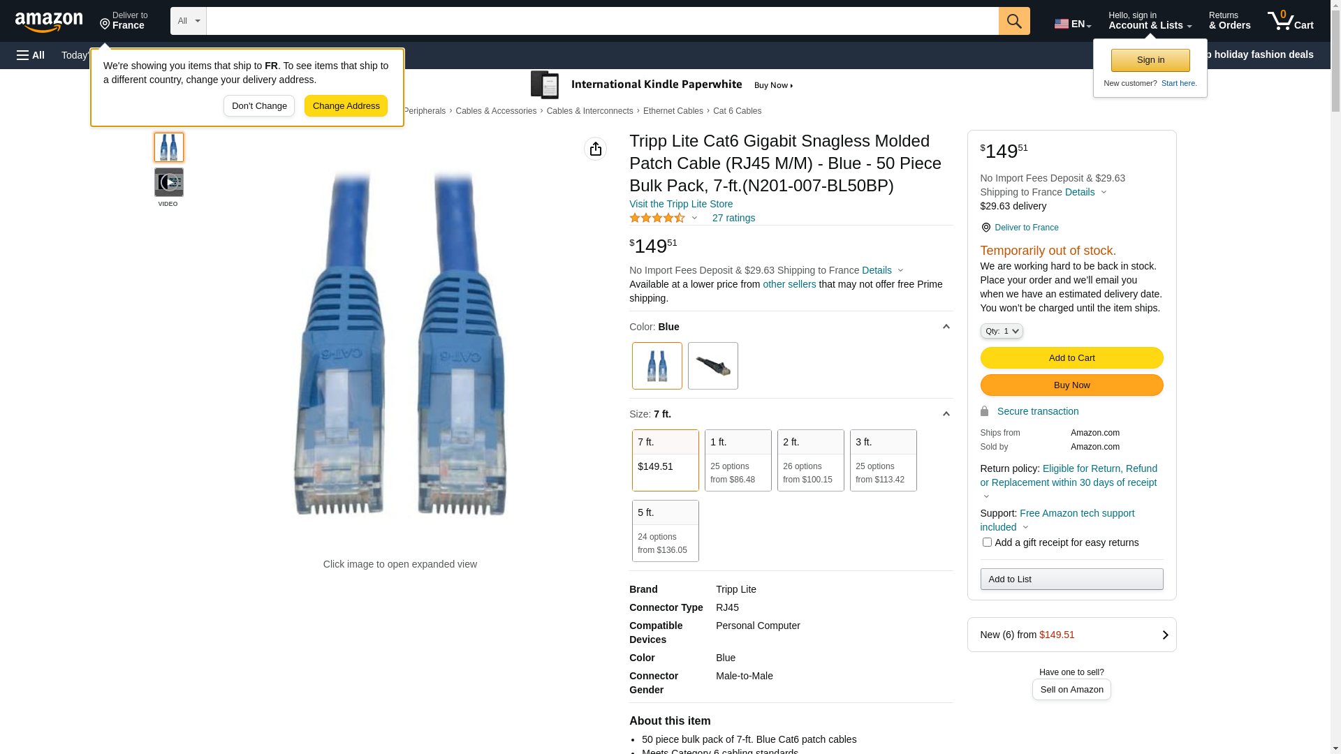 - Length: 7-ft. / Color: Blue / Connectors: RJ45 male