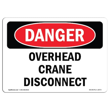 OSHA Danger Sign, Overhead Crane Disconnect, 24in X 18in Decal